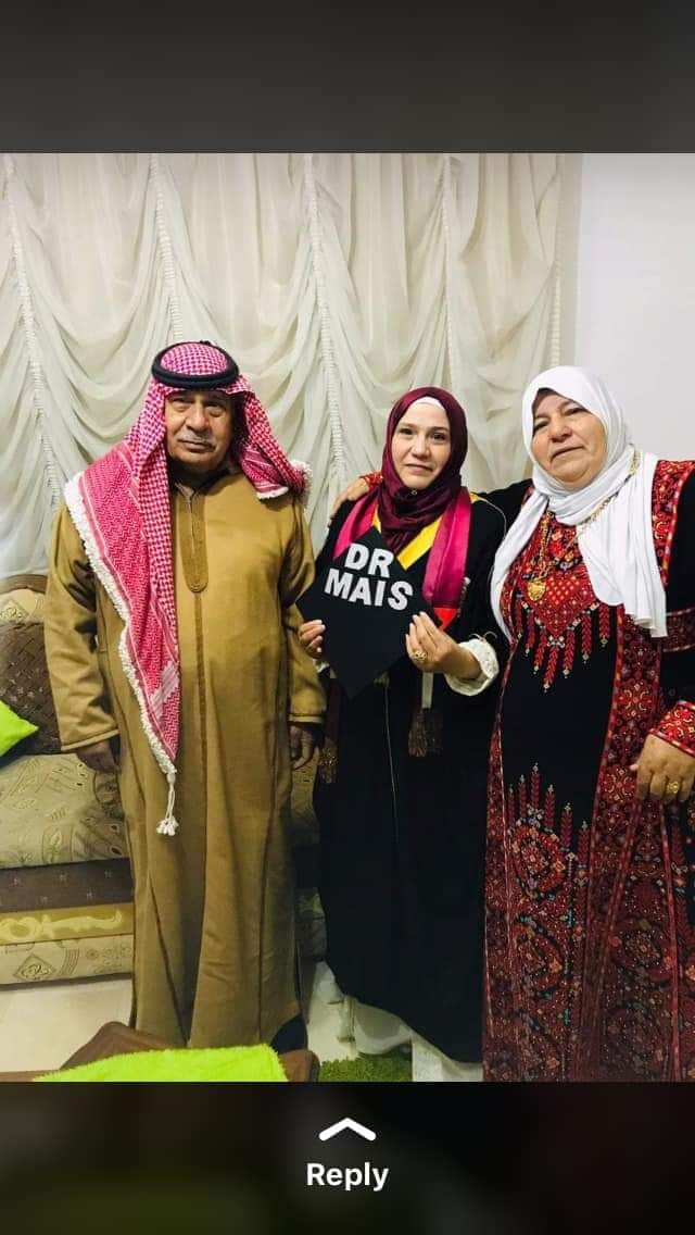 لحصولها على درجة الدكتوراه من جامعة العلوم الاسلاميه حيث ناقشت رسالتها بعنوان" إثر القصه الإلكترونيه ومسرح الدمى في تنمية المهارات اللغويه والرياضيه لدى رياض الاطفال "