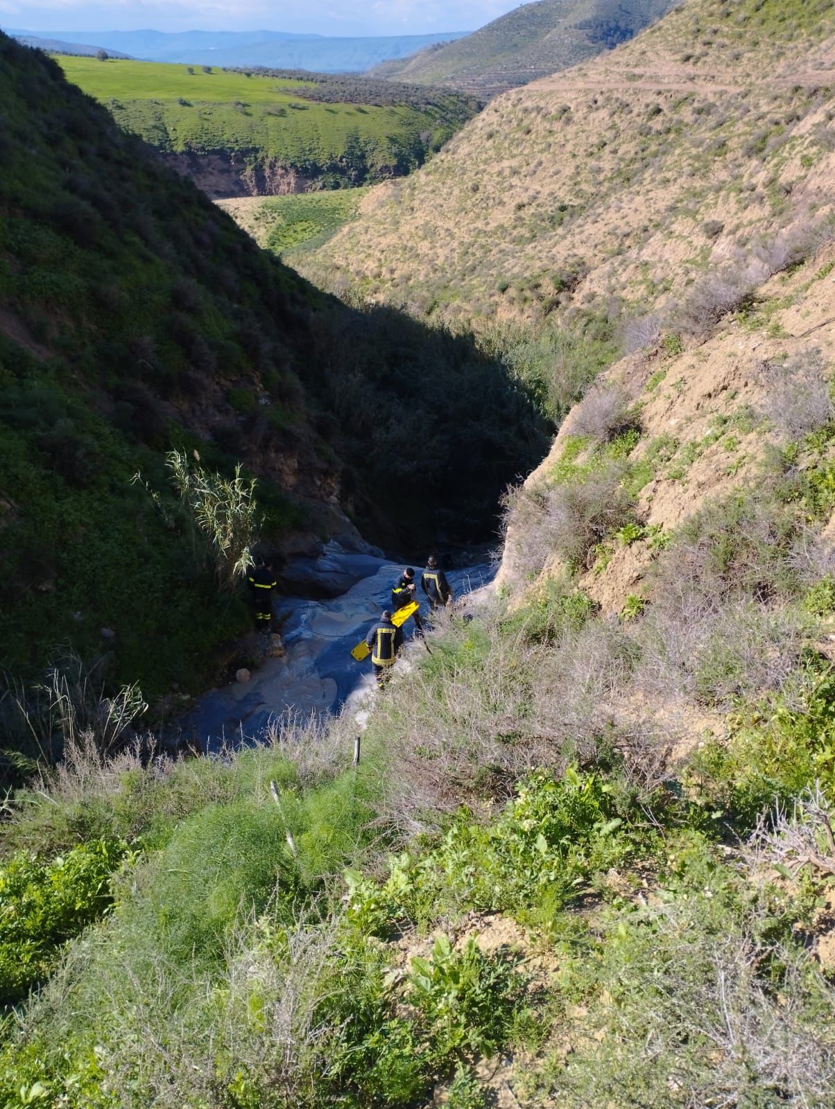 وتحركت مجموعات الدفاع المدني على الفور للموقع، وتمكنت من الوصول لمكان سقوط الشخص المصاب بعد المسير على الأقدام لمسافة ٢كم نظرا لوعورة المنطقة وتعذر سير الآليات عليها لا سيما في ظل الظروف الجوية السائدة، وتبين أن سقوط الشخص عن مقطع صخري في الوادي تسبب بإصابته بكسر في منطقة القدم.