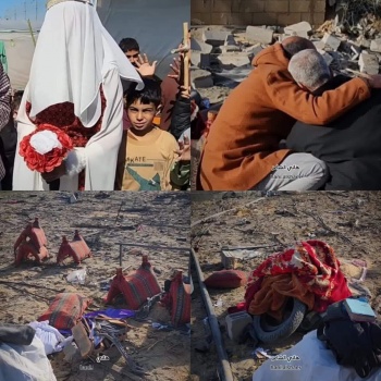 #مريم و #عبد #الله #عروسان لم يمهلهما الاحتلال الإسرائيلي؛ فبعد ثلاثة أيام فقط من زفافهما استشهدا في قصف لاستراحة عائلية بمنطقة #خربة #العدس" في مدينة #رفح جنوبي قطاع #غزة.