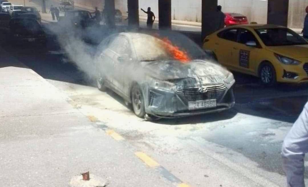 وقع حادث #اشتعال ظهر اليوم ل #سيارة #كهربائية اثناء تواجدها في منطقة #جسر #زي / #السلط