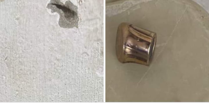 والله لا اعرف ماذا اقول .. شوفوا الرصاصه دخلت الجدار و وتهشمت من القوة.. يعني مش ارتداد من الجو ولكن رمي مباشر .