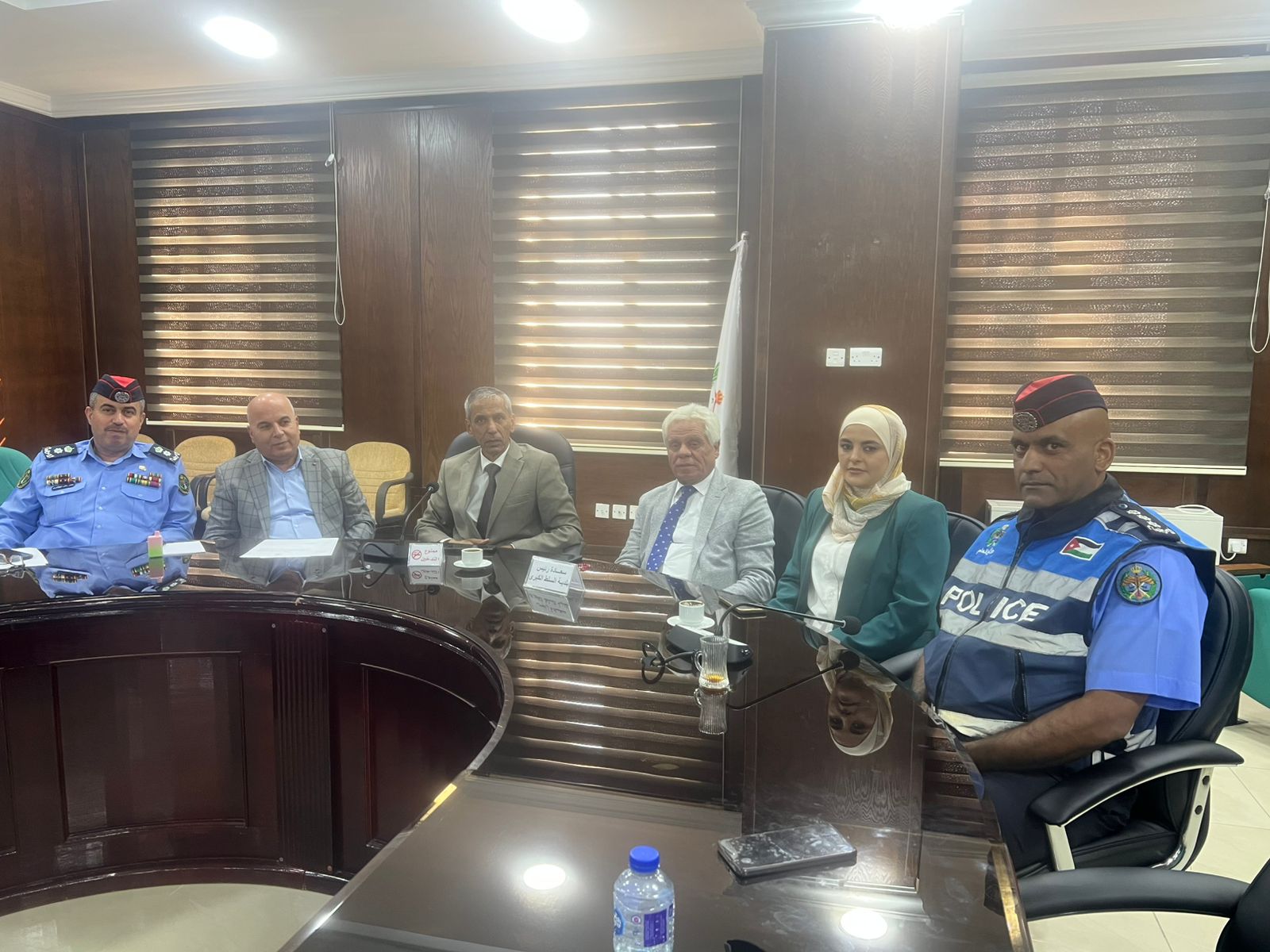 تراس محافظه البلقاء سلمان النجادا الاجتماع الذي عقد في دار المحافظه بحضور كافه اعضاء لجنه السير ( نائب المحافظ ورئيس البلديه ومدير الاشغال ورئيس قسم السير ومندوب من المعهد المروري) وذلك لغايات بحث الواقع المروري على طريق الستين وبعد الكشف على الشارع