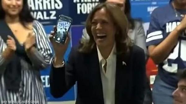 وبعد ذلك أدرات هاريس الهاتف باتجاه الموجودين في المكان، الذين صفقوا وهتفوا.