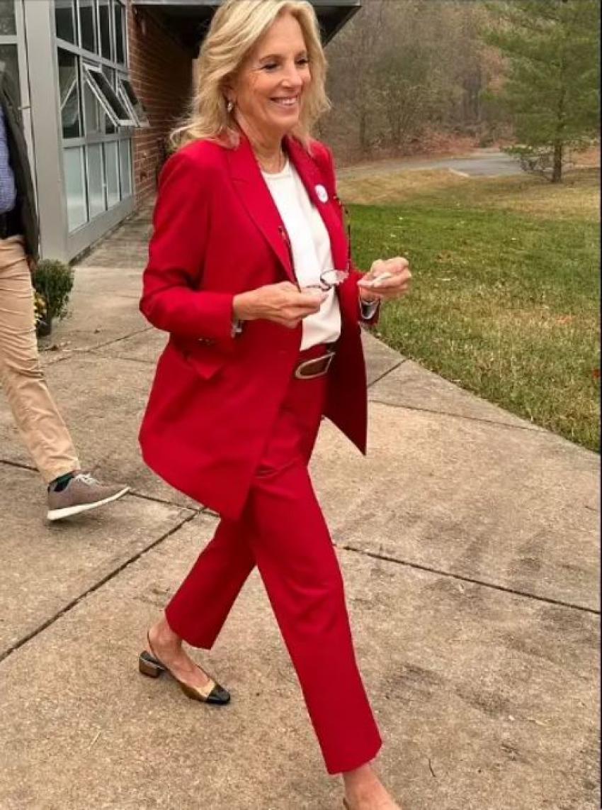 جاءت هذه التساؤلات بعد أن ارتدت زوجة جو بايدن جيل بايدن زيًا "باللون الأحمر الفاقع" والواضح للغاية عندما ذهبت للتصويت، بينما أدلت حفيدته نعومي بإعلان صادم في يوم الانتخابات.