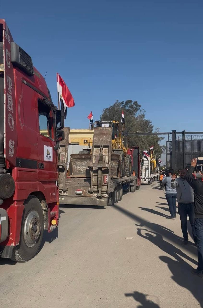 بدء دخول المعدات الثقيلة من معبر رفح تمهيدًا لإصلاح الطرق بالجانب الآخر من المعبر.
