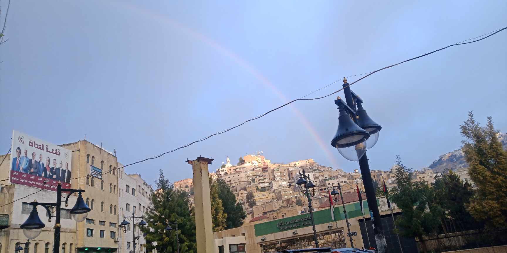 قوس قزح في سماء مدينة السلط صباح اليوم
