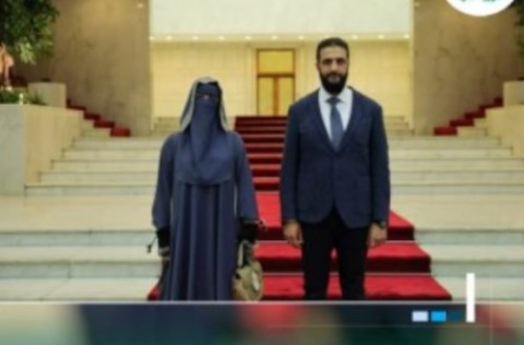 وقالت تقارير إن زوجة الشرع، محجبة، وليست منقبة.