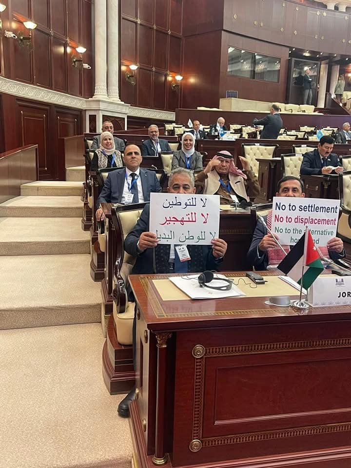 النائب المعادات يرفع شعار .. لا للتوطين لا للتهجير لا للوطن البديل خلال اجتماع الجمعية البرلمانية الاسيوية