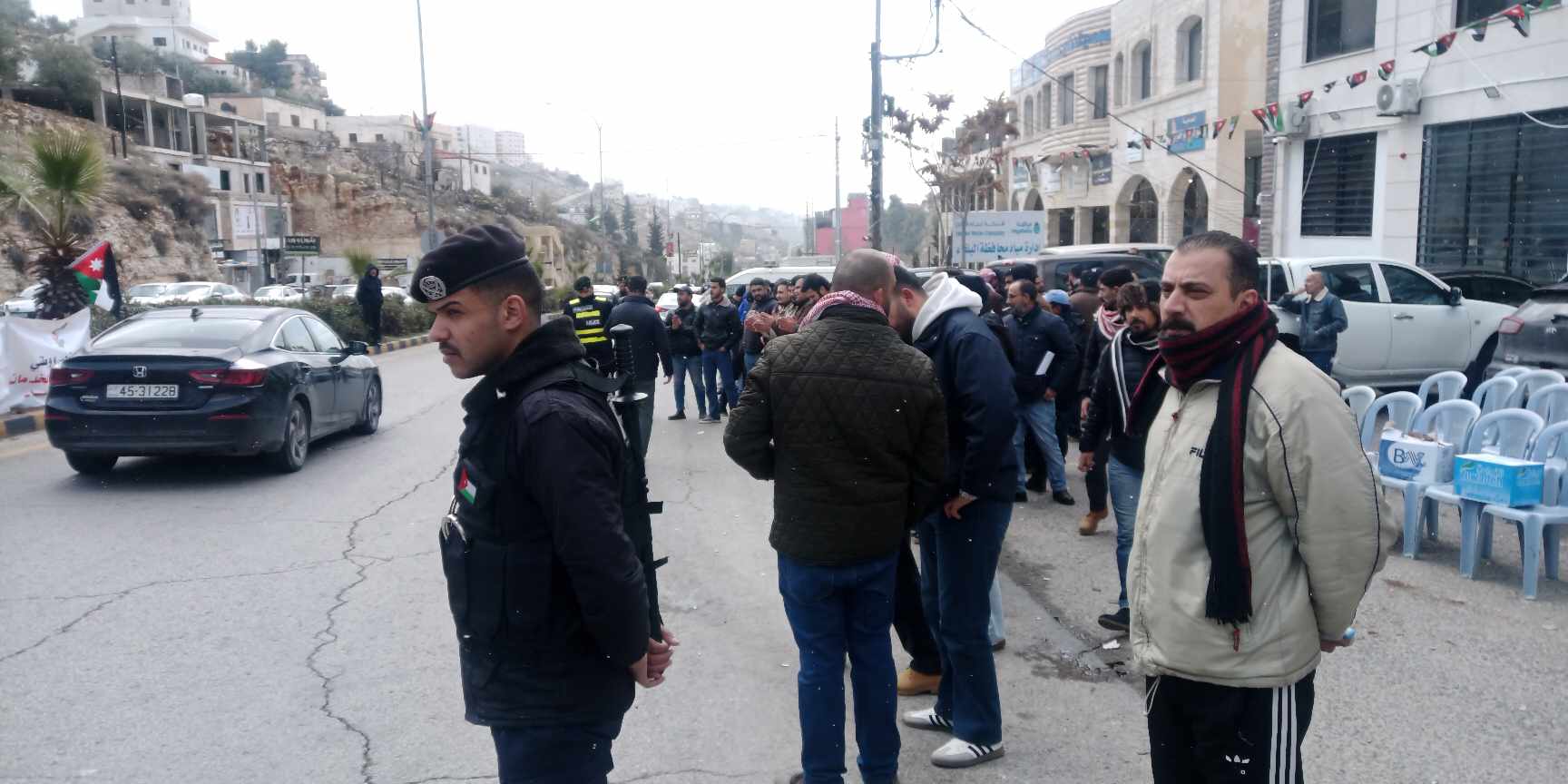 اعتصم العشرات من موظفي شراء خدمات البلقاء " مياهنا " صباح اليوم امام مقر الشركة بمنطقة وادي الشجرة / مدخل مدينة السلط