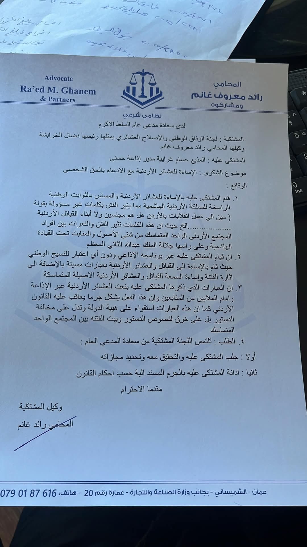 شكوى أخرى لدى #مدعي #عام #السلط ضد المسيء للعشائر الأردنية والأردنيين