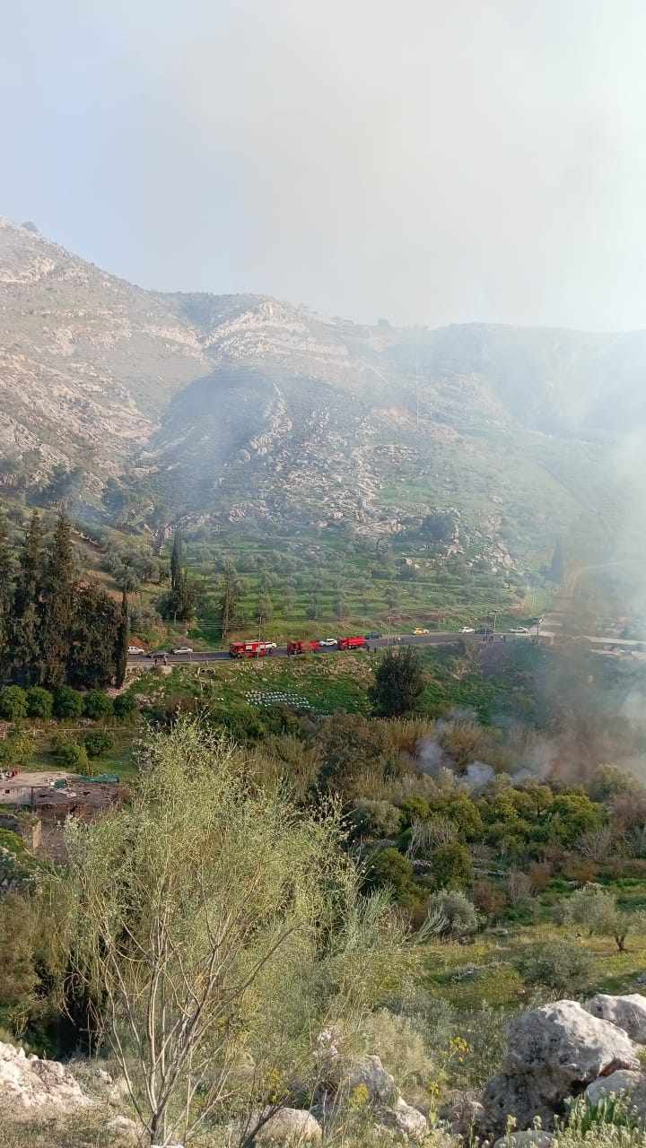 اندلع حريق ظهر اليوم في منطقة جسر وادي شعيب / محافظة البلقاء