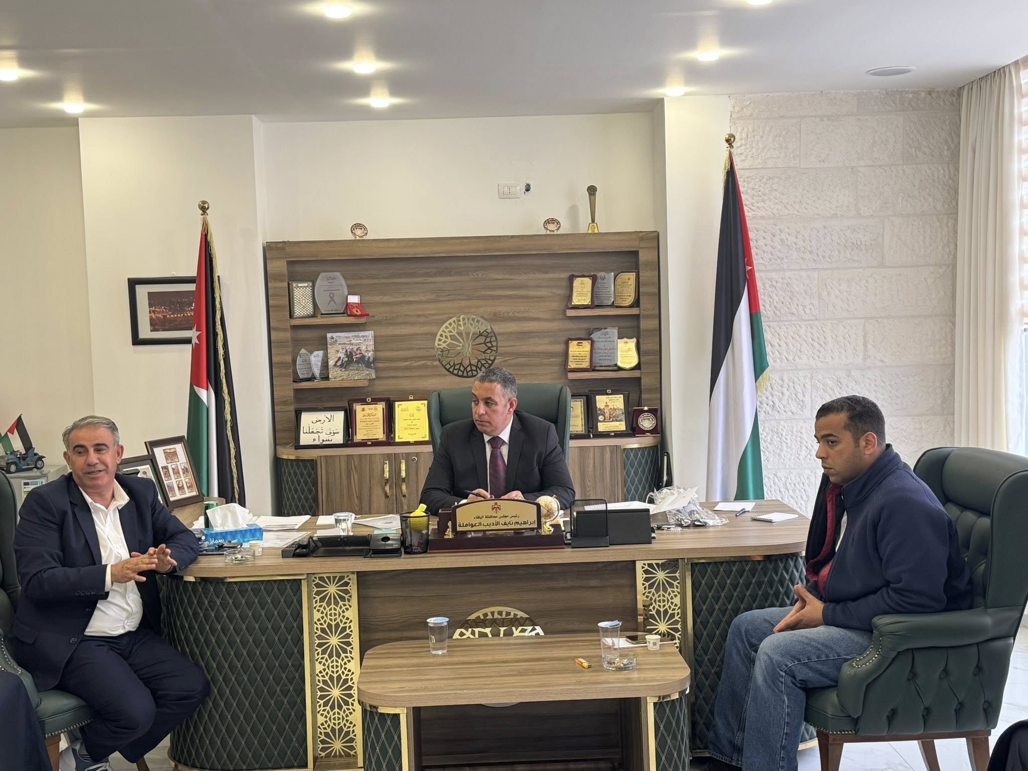 عقدت جهات رسمية ومؤسسات وطنية في محافظة البلقاء جلسة تحضيرية تنسيقية استعدادًا لاحتفالية #يوم #العلم #الأردني ، ضمّت رئيس مجلس محافظة البلقاء إبراهيم نايف الأديب العواملة، عطوفة وصفي الطويل مدير مديرية ثقافة البلقاء، السيد مهند الواكد منسق هيئة شباب كلنا الأردن في البلقاء، السيد حسن الصقور منسق مؤسسة ولي العهد – فرع البلقاء، والسيد محمد خريسات ممثل مبادرة “السلط تقرأ”.