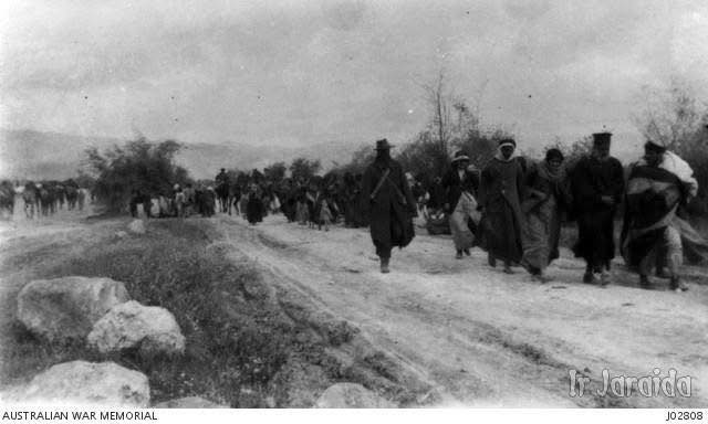 لاجئون من السلط في طريقهم الى فلسطين ايام الحرب العالمية الاولى عام 1918 بعد الهجوم على مدينة السلط من قبل القوات الأسترالية و النيوزلندية (سنة الفلة)