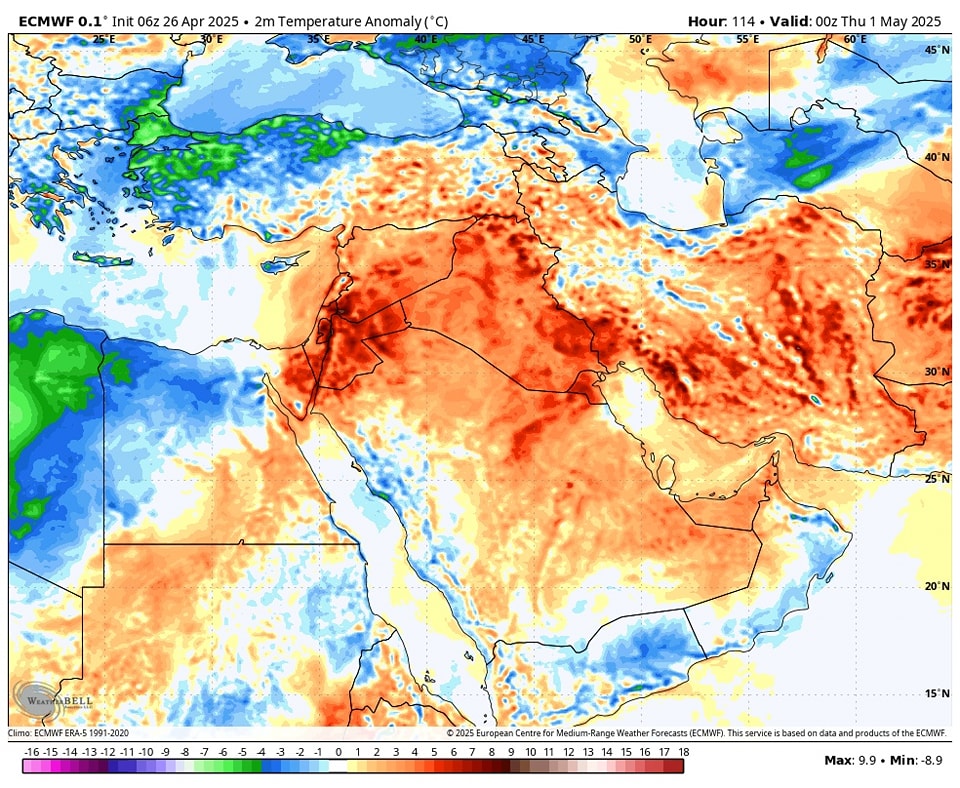درجات حرارة لطيفة نهارا وباردة ليلا حتى الثلاثاء في الاردن وفلسطين وسوريا ولبنان وشمال مصر والعراق والسعودية بمشيئة الله تعالى..