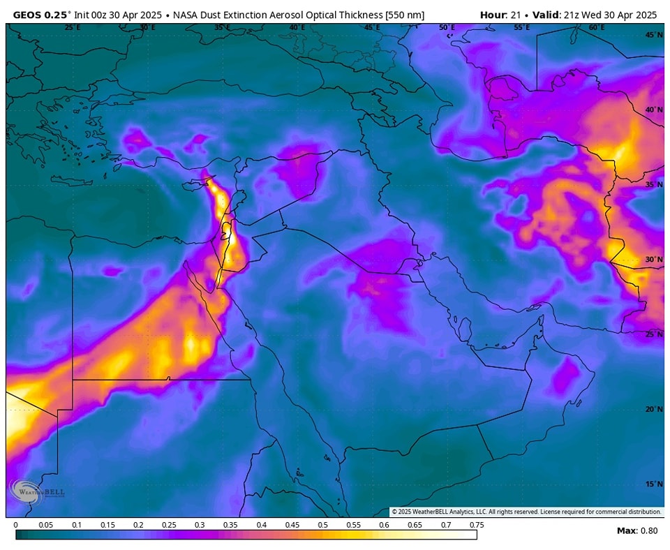 موجة غبار ثقيلة تجتاح اجواء بلاد الشام.. من المتوقع ان تتلاشى تدريجيا اعتبارا من منتصف هذه الليلة بمشيئة الله تعالى.
