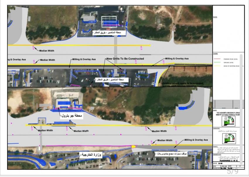 اعلنت وزارة #الأشغال #العامة والإسكان عن بدء تنفيذ مشروعين مهمين يهدفان إلى تحسين حركة المرور وتطوير البنية التحتية للطرق ضمن مناط اختصاصها في العاصمة عمان، حيث سيتم إنشاء #طريق #خدمة على طريق #المطار في المنطقة الممتدة من وزارة الخارجية وحتى ما بعد محطة المناصير للمحروقات على الجانب القادم من الدوار السابع باتجاه المطار وعلى الجهة المعاكسة من محطة المناصير وحتى محطة جوبترول كما سيتم تنفيذ أعمال تأهيل الجزيرة الوسطية على شارع الملك عبدالله الثاني من الدوار الثامن وحتى نفق الملتقى بطول 2 كلم تقريباً.
