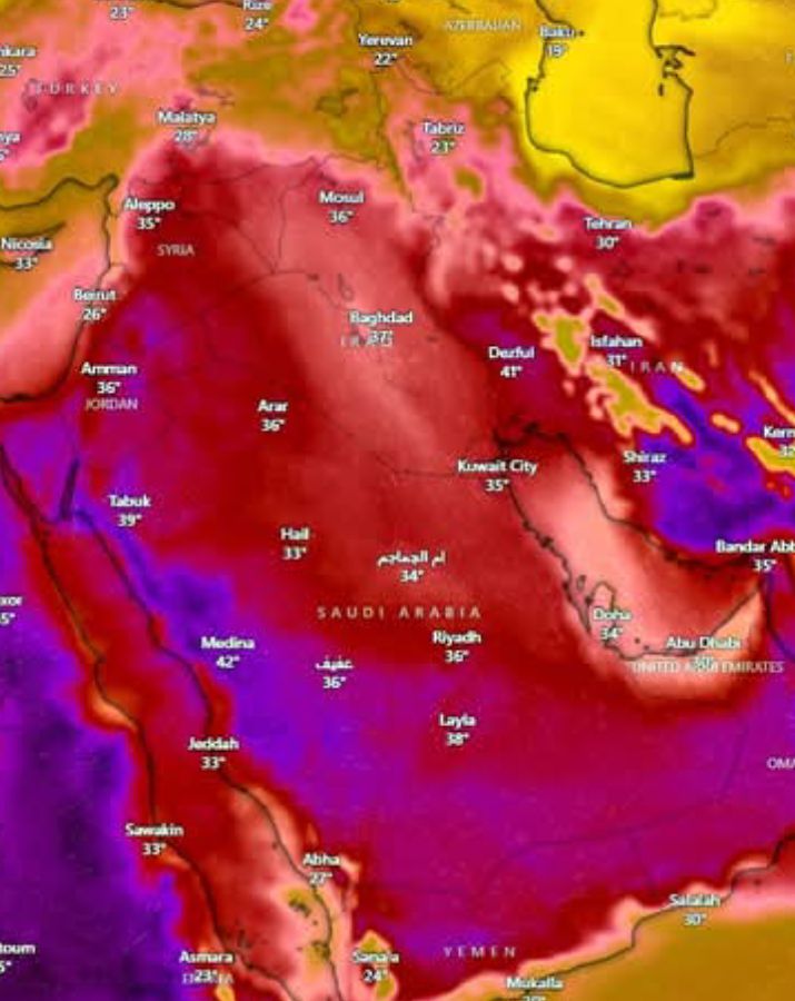 ︎ كتلة حارة من المتوقع ان تبدأ تأثيرها على المنطقة اعتبارا من ساعات نهار السبت ، حيث ترتفع درجات الحرارة لتلامس 40 درجة في بعض المناطق .