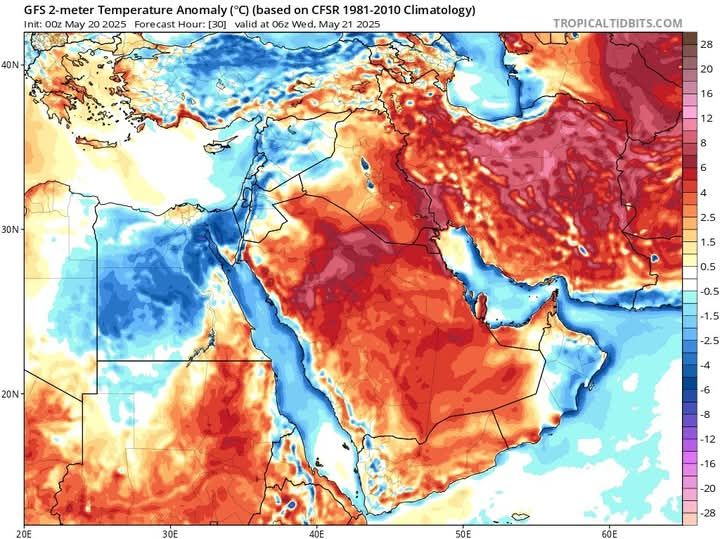 #الاردن و #بلاد_الشام ، لا موجات حر قويه قادمة خلال الفترة القادمة والحمدلله ، باستثناء ارتفاع مؤقت وسريع على درجات الحرارة ، يومي #الاحد و #الاثنين القادمين ، تصبح الأجواء حارا ، ثم يليها انخفاض واضح على درجات الحرارة مع نهاية #الاسبوع_القادم ، كنتيجة الإقتراب كتله هوائية ذات درجات الحرارة أقل من المعتاد اشبه بالخريفية ، تعمل على أجواء ربيعية نهاراً وباردا ليلاً وهبوب رياح غربيه منعشة وفرص هطول أمطار خاصه في #لبنان و #سوريا تفاصيلها أكثر خلال الأيام القليلة القادمة..