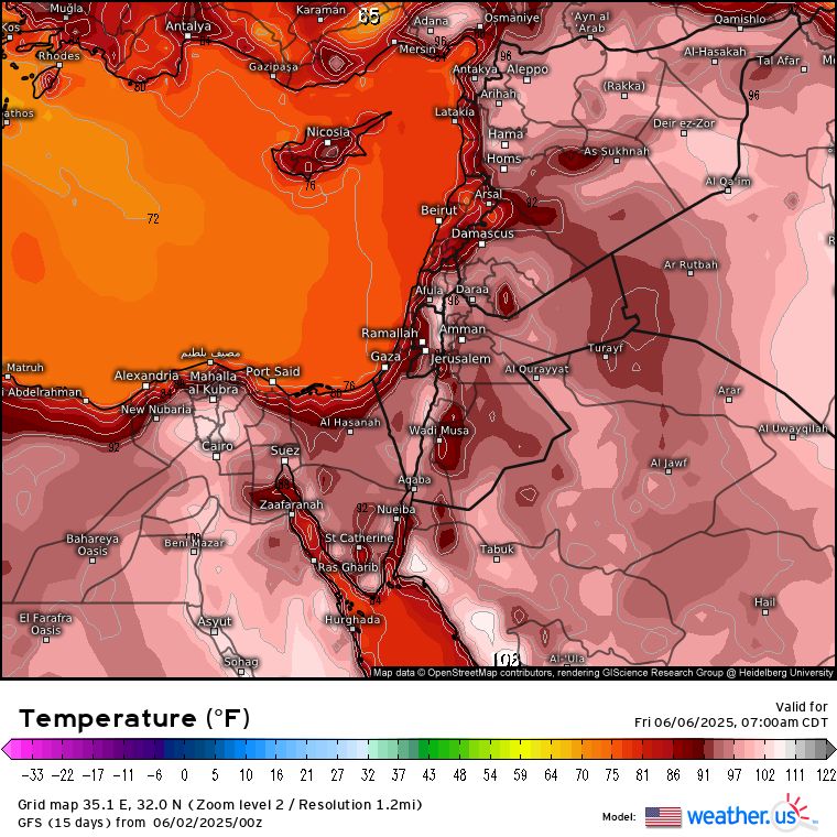 تشير آخر تحديثات القراءات #النماذج_العديدية مؤشرات على اندفاع كتله هوائية حاره نسبياً نحو #البلاد خلال فترة #عشية #عيد_الاضحى_المبارك تستمر تأثيراً على المنطقة لعدة أيام ، تعمل على ارتفاع على درجات الحرارة لتصبح أعلى من المعدلات ، يسود الطقس حاره نسبياً في المناطق المنخفضة والغربيه من البلاد ، بينما تكون شديدة الحرارة في المناطق الشرقيه من #المملكه والاغوار والبحر الميت والعقبة بإذن الله تعالى ، سيتم تزويدكم بتفاصيل اكثر قادم الأيام ..