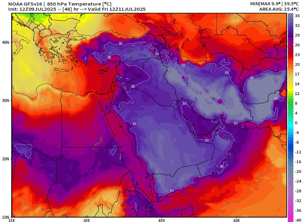 آخر التحديثات الجوية الصادرة عن مركز "طقس العرب" إلى اقتراب كتلة هوائية حارة من أجواء المملكة خلال عطلة نهاية الأسبوع، ما سيؤدي إلى ارتفاع درجات الحرارة في مختلف المناطق، دون أن تتأثر المملكة بشكل مباشر بهذه الكتلة.