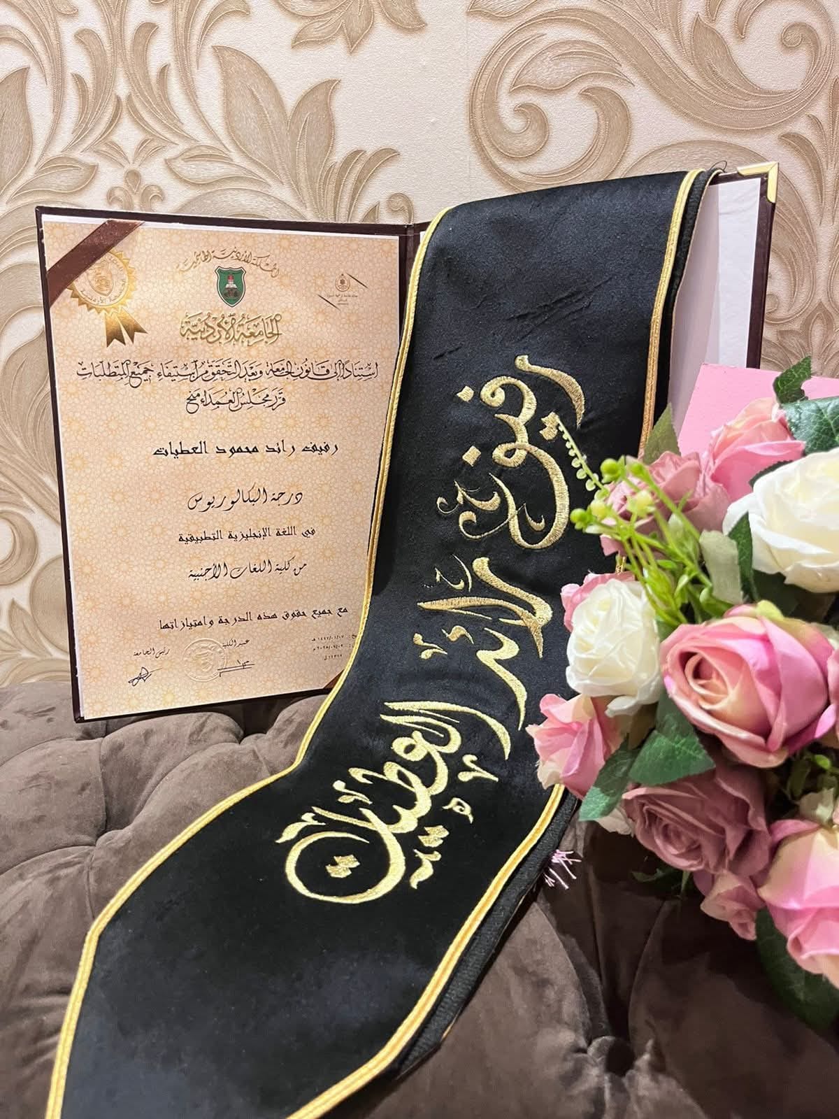 يتقدم الجد فايز القماز ابولؤي والجده ام لؤي والاخوال لؤي واحمد ومهند ومحمد والخالة (ام عون الوريكات ) بأحر التهاني والتبريكات بمناسبة تخرج حفيدتهم وابنة شقيقتهم