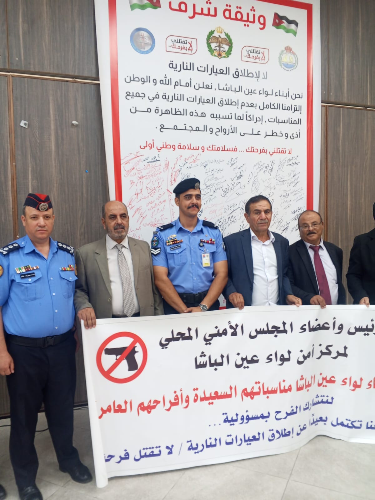 وكما تحدث نائب رئيس مركز امن لواء عين الباشا النقيب محمد غانم ان عدم اطلاق العينات الناريه هو واجب وطني للحفاظ على السلم المجتمعي وارواح المواطنين لان جلاله الملك تحدث ام الانسان الاردني اغلى شيء في هذا الكون ويجب محاربتها به الظاهره السيئه