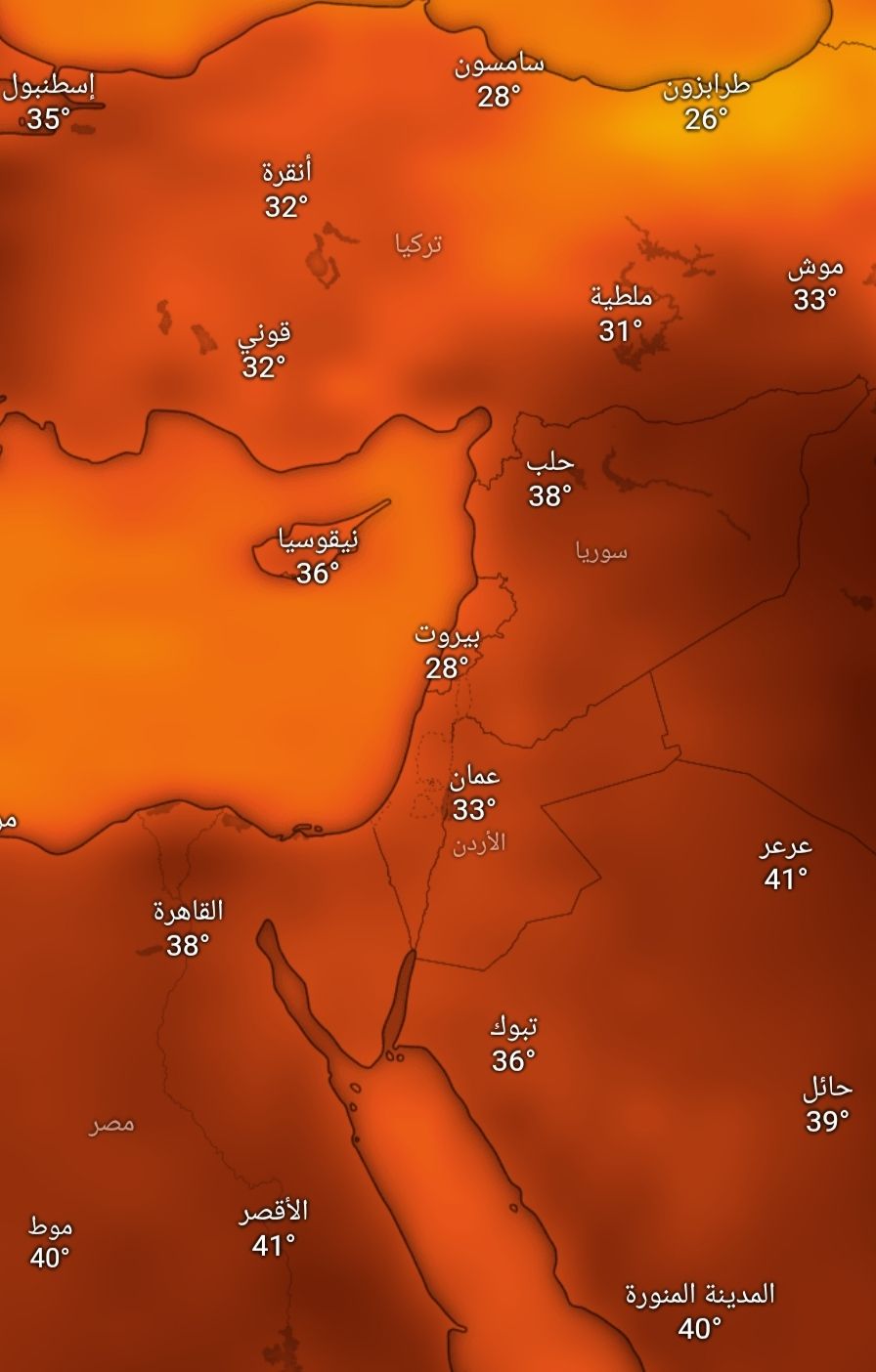 كتلة هوائية حارة تبدأ يوم الثلاثاء 22 (تموز /يوليو ) وتستمر حتى يومي السبت والأحد (26 تموز / يوليو ) ترتفع فيها درجات الحرارة لتتجاوز حاجز 34-37 درجة مئوية وتسود أجواء حارة في أغلب المناطق وشديدة الحرارة في الأغوار والبحر الميت والعقبة حيث متوقع أن تسجل درجات الحرارة حاجز 40-45 درجة مئوية وتنخفض ليلا في أغلب المناطق إلى حدود ما بين 24-26 درجة مئوية وتسود أجواء معتدلة في أغلب المناطق ولطيفة فوق الجبال العالية والسهول ومناطق البادية .