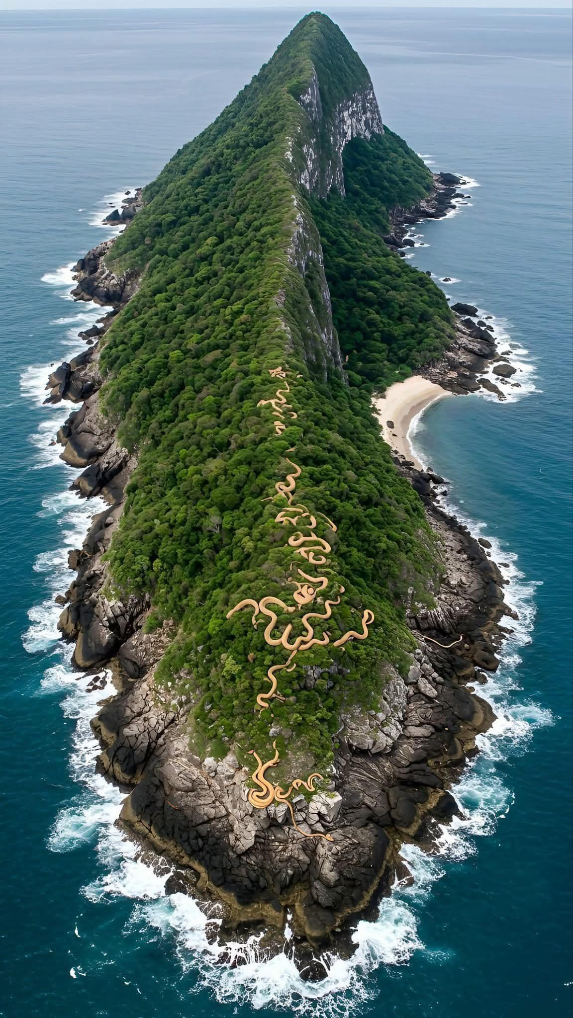 يُعتقد أن الجزيرة تأوي أكثر من 4,000 أفعى، أبرزها وأكثرها رعبًا: “أفعى رأس الرمح الذهبي” (Golden Lancehead)، وهي واحدة من أخطر أنواع الأفاعي على الإطلاق… إذ يُمكن لسمّها أن يُذيب اللحم البشري خلال دقائق!