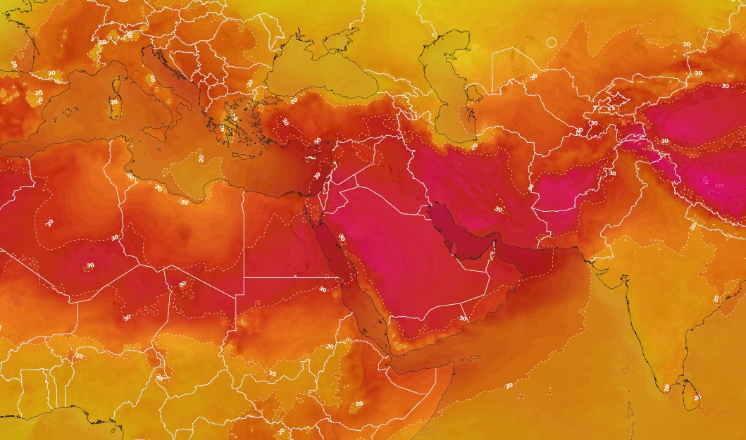حيث تشير التوقعات إلى ارتفاع ملحوظ على درجات الحرارة منتصف الأسبوع في كل من الأردن، فلسطين، سوريا، لبنان، مصر، العراق، وشمال السعودية، وذلك نتيجة تحرك الكتلة الهوائية الحارة باتجاه المنطقة.