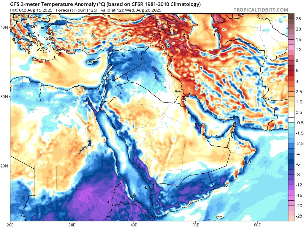 تستمر هذه الكتلة المعتدلة طوال الاسبوع ولا مؤشرات حتى الان على موجات حر خلال الايام المقبلة.