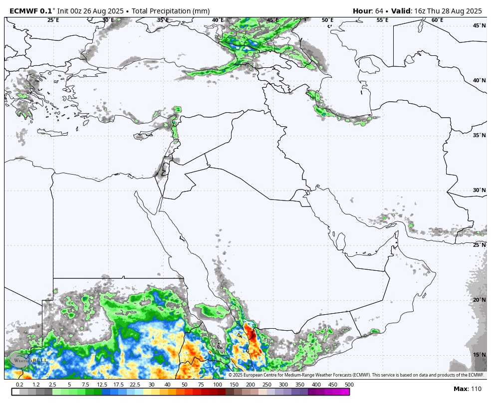 البلقاء اليوم - من المتوقع هطول زخات أمطار على سواحل بلاد الشام، قد تمتد إلى بعض المناطق الداخلية في فلسطين وشمال الأردن، نتيجة لتعمق كتلة هوائية معتدلة ورطبة عبر شرق البحر الأبيض المتوسط نحو المنطقة.