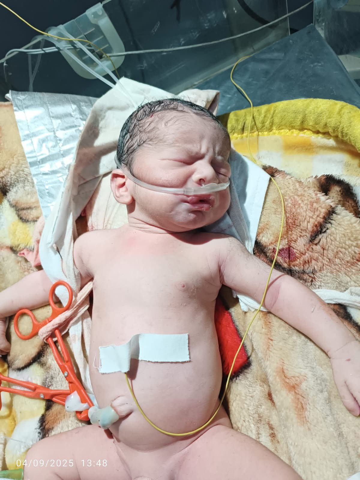 البلقاء اليوم - كتب مدير عام مستشفى الشفاء الدكتور ابو سلمية : هذا الطفل اخرج على عجل بعملية قيصرية طارئة في قسم الطوارئ من قبل اطباء قسم الطوارى
