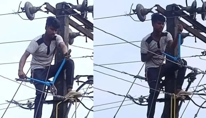 انتشر على مواقع التواصل الاجتماعي مقطع فيديو أثار تفاعلاً واسعاً في الهند، يُظهر شاباً يتسلق عمود كهرباء حاملاً كماشة كبيرة، في مشهد وُصف بـ"المغامرة الخطرة".