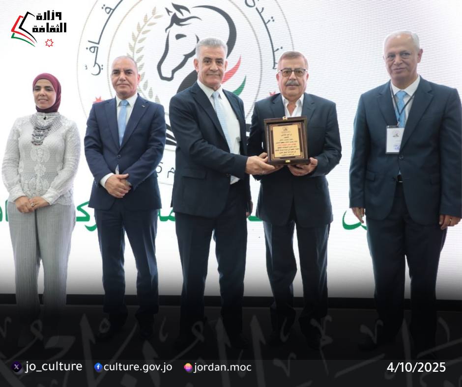 مندوبًا عن وزير الثقافة، رعى عطوفة الأمين العام لوزارة الثقافة الدكتور نضال الأحمد احتفال منتدى الفحيص الثقافي بمناسبة مرور ثلاثين عاماً على تأسيسه، والذي أقيم يوم السبت 4 تشرين الأول 2025 في "بيت الفحيص"، بحضور عطوفة متصرف لواء ماحص والفحيص الدكتور صفوان مبيضين، ومديرة مديرية ثقافة محافظة البلقاء الدكتورة منى سعود، والقنصل في السفارة المصرية السيد أحمد فتحي.