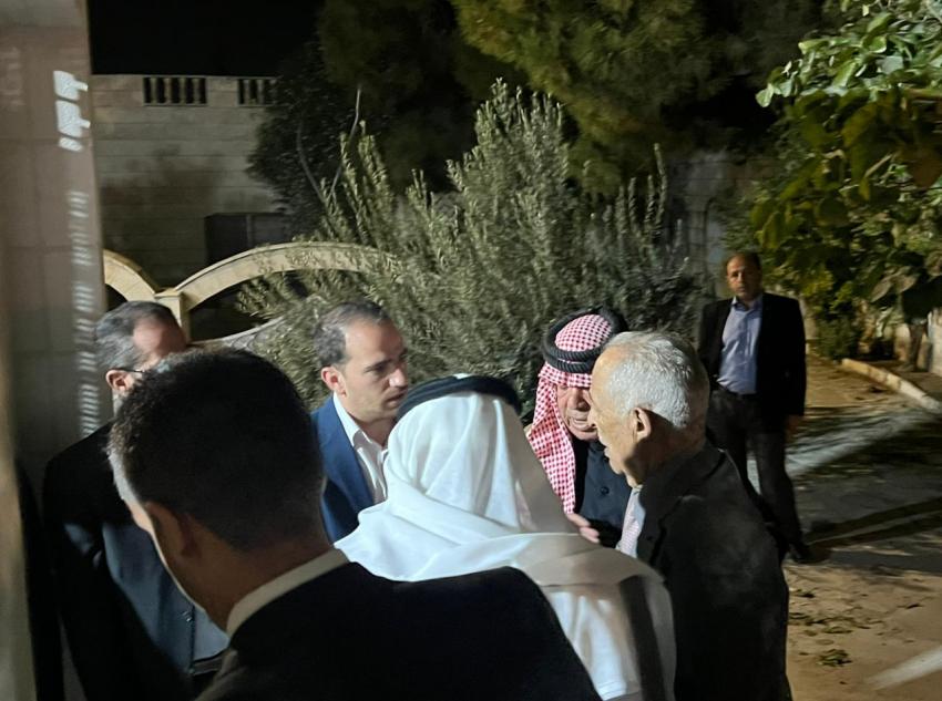 البلقاء اليوم - مندوبا عن جلالة الملك عبدالله الثاني وسمو الأمير الحسين بن عبدالله الثاني، ولي العهد، قدّم رئيس الديوان الملكي الهاشمي يوسف حسن العيسوي، اليوم الثلاثاء، واجب العزاء إلى عشيره الكلوب ناقلًا إليهم تعازي ومواساة جلالته وسمو ولي العهد.