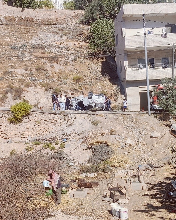 البلقاء اليوم - تدهور مركبة وانقلابها في منطقة تلاع الرباب / وادي الأكراد في السلط