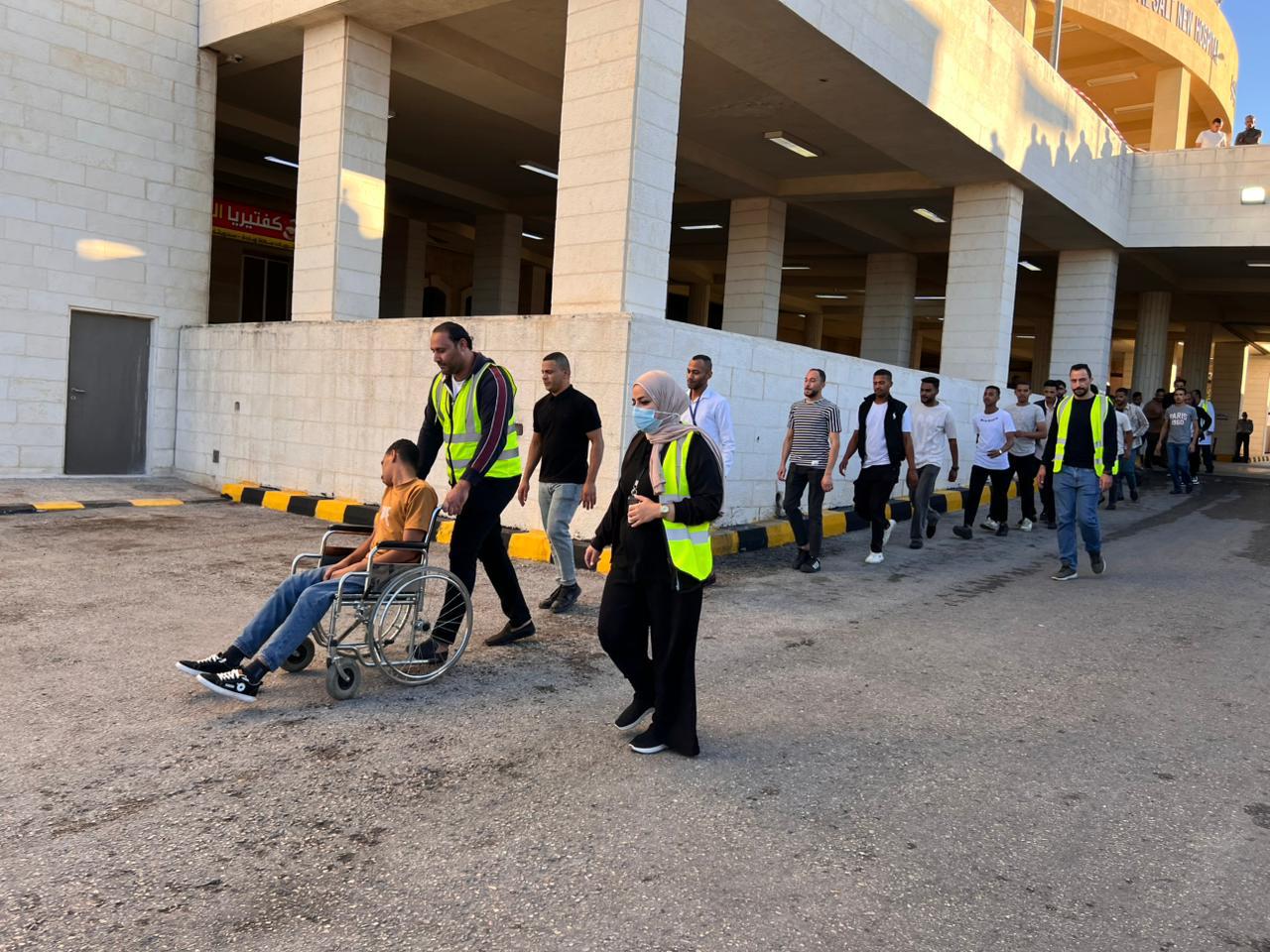 وقد افترضت الفرضية وقوع حريق ناتج عن تماس كهربائي في أحد الممرات الرئيسية ما أدى إلى اندلاع النيران وتصاعد دخان كثيف إلى جانب تسريب غاز في منطقة مجاورة. وعلى الفور انتقلت فرق الدفاع المدني إلى موقع الحادث الافتراضي وبدأت عمليات الإخلاء الآمن للمرضى والكوادر الطبية باستخدام أحدث البروتوكولات المتبعة كما تم تقديم الإسعافات الأولية للمصابين وتطبيق إجراءات احتواء التسريب الغازي مع الاستعانة بأجهزة الإنعاش الآلي (AED) والتعامل مع الإصابات الحرجة وانزال لبعض المصابين من الطوابق المرتفعه للمستشفى.