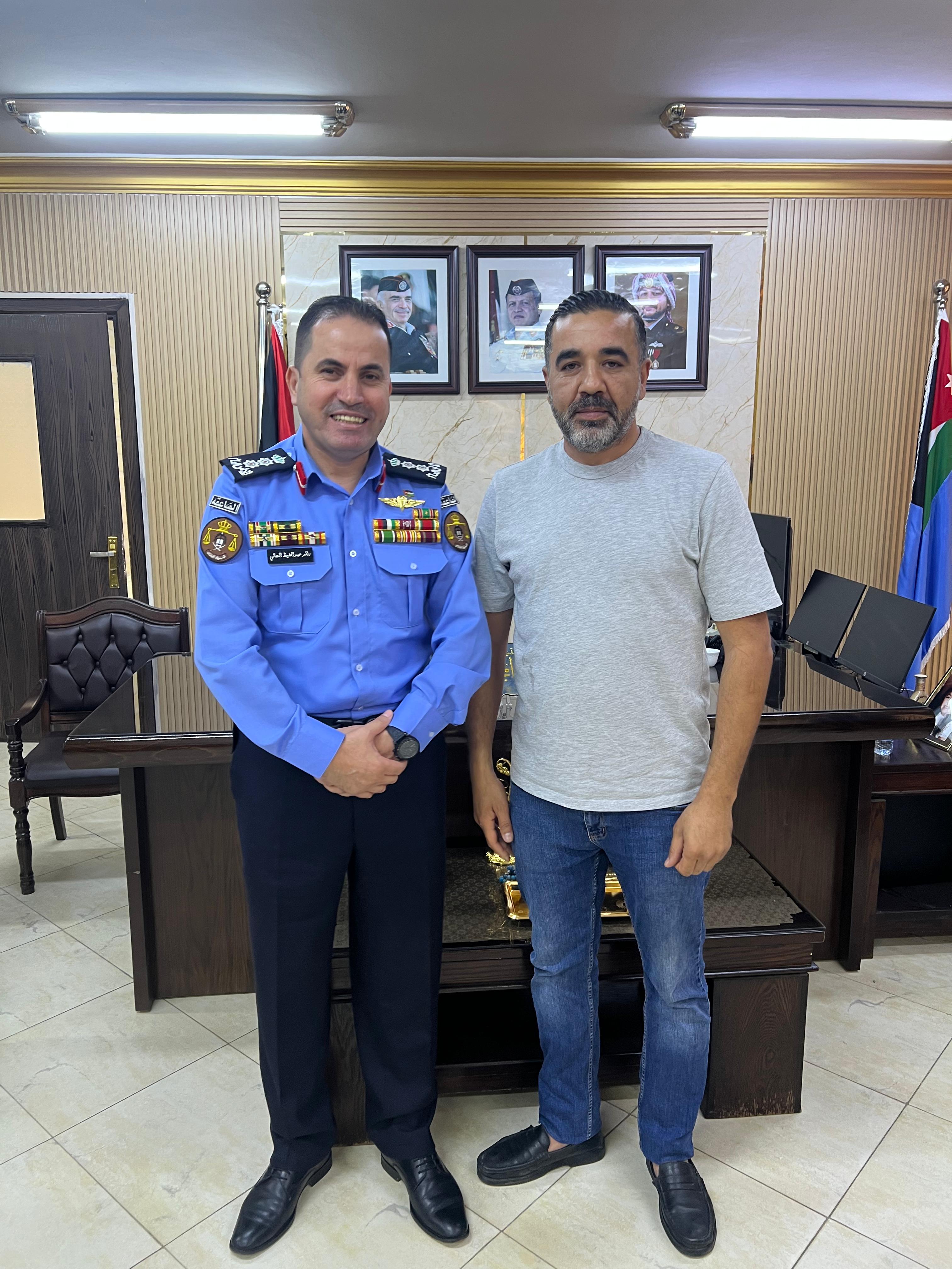 في أجواء سادها الود والتقدير قام وفد من الصحفيين والإعلاميين الرسميين بزيارة ودية إلى مديرية شرطة محافظة البلقاء لتقديم التهنئة للعقيد رائد عبد الحفيظ المجالي بمناسبة توليه مهام مدير شرطة محافظة البلقاء وذلك تأكيداً على عمق العلاقة بين الإعلام والأجهزة الأمنية وتعزيزاً لقيم التشاركية والتكامل في خدمة الوطن والمواطن.