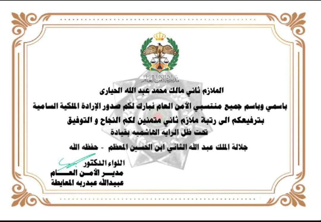 البلقاء اليوم - يتقدم الدكتور #محمد #بزبز #الحياري من نجله #الملازم #مالك ابو هاشم باسمى ايات التهنئة والتبريك بمناسبة الترفيع ...بالتوفيق والى الامام في ظل الراية الهاشمية