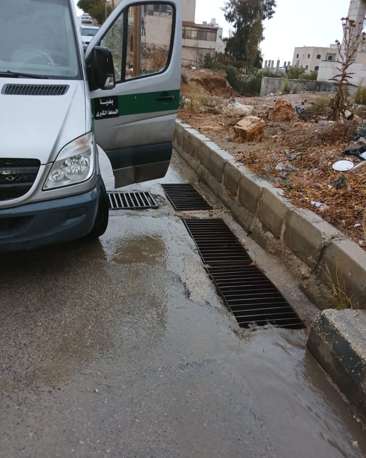 ومتابعة انسيابية مياه الأمطار في شبكات التصريف في مدينة السلط الكبرى ومناطقها