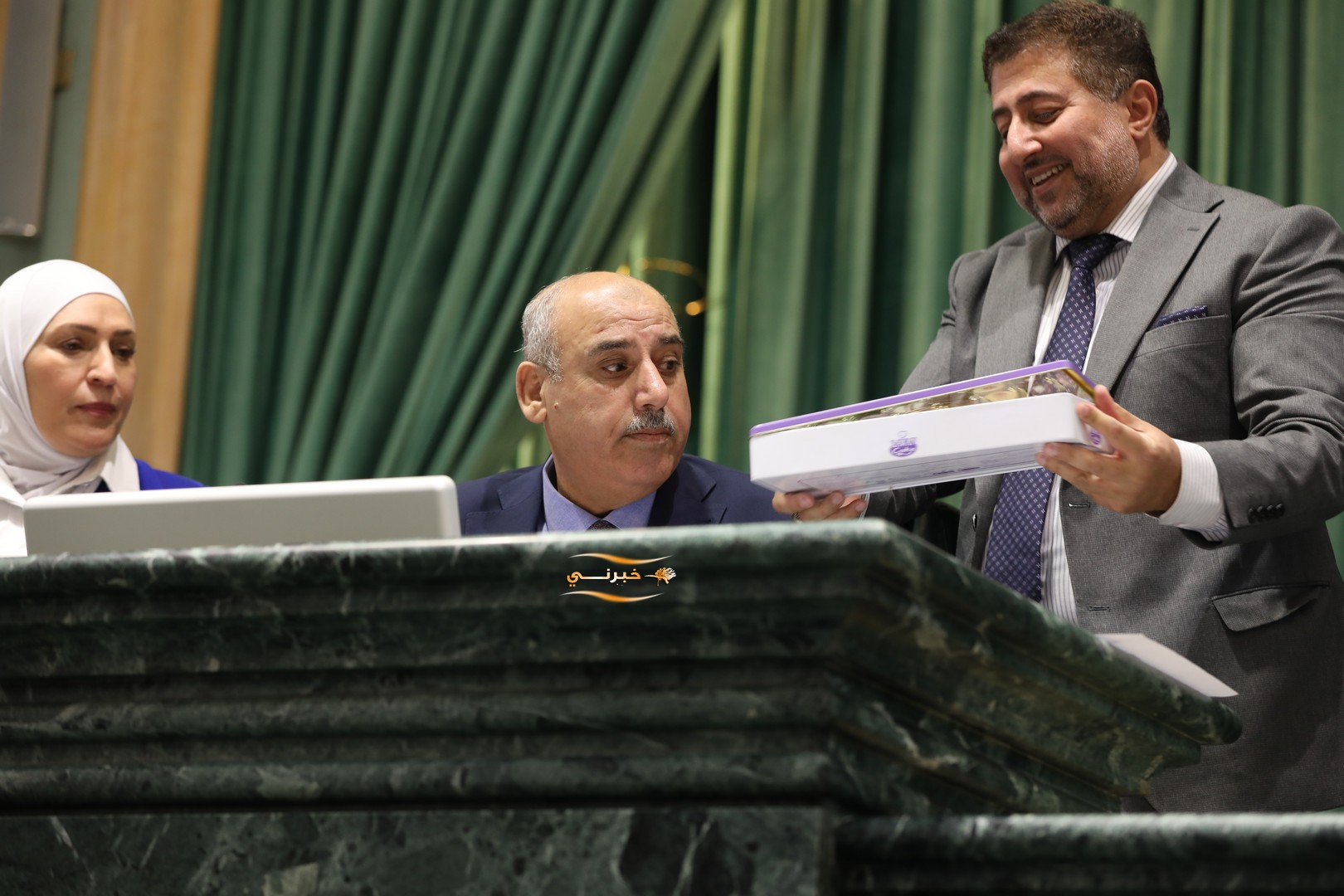 البلقاء اليوم - وزّع النائب أحمد الرقب الحلوى تحت قبّة البرلمان، خلال الجلسة التشريعية التي عقدها مجلس النواب يوم الاثنين، وذلك تزامناً مع مناقشة مشروع القانون المعدّل لقانون خدمة العلم والخدمة الاحتياطية لسنة 2025، والذي تم منحه صفة الاستعجال.