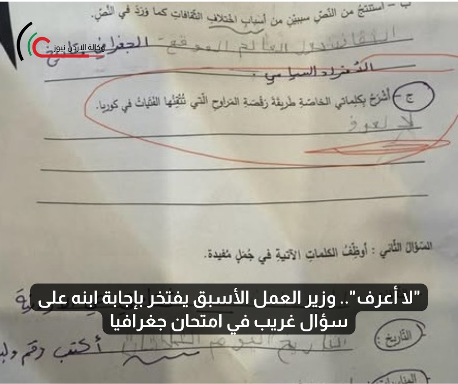 البلقاء اليوم - الوزير الاسبق نضال البطاينة يعلق على سؤال جغرافيا غريب لابنه (9 سنوات): "اشرح رقصة المراوح الكورية".. ويقول: "سررت بإجابته بـ"لا اعرف" وقلت له هيك مظبطة بدها هيك ختم"