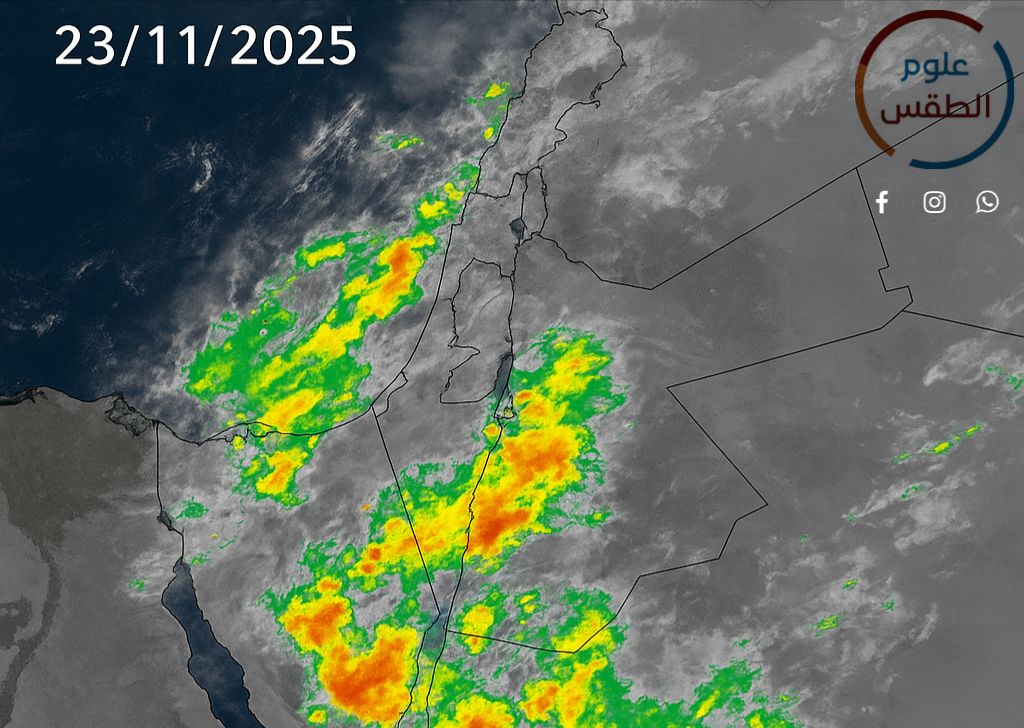 تتشكل خلايا رعدية عدوانية—هائجة، غير منتظمة، خطرة بطبيعتها—خصوصاً نحو الأغوار والمناطق المنخفضة، حيث يُتوقَّع هطول زخات مطرية غزيرة مصحوبة بالبرد والقصف الرعدي ️.