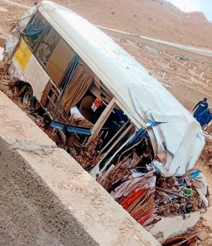 الحافلة التي جرفتها السيول في منطقة أبو الزيغان/الزرقاء والتي أكدت مديرية الأمن العام خلوّها من الركاب