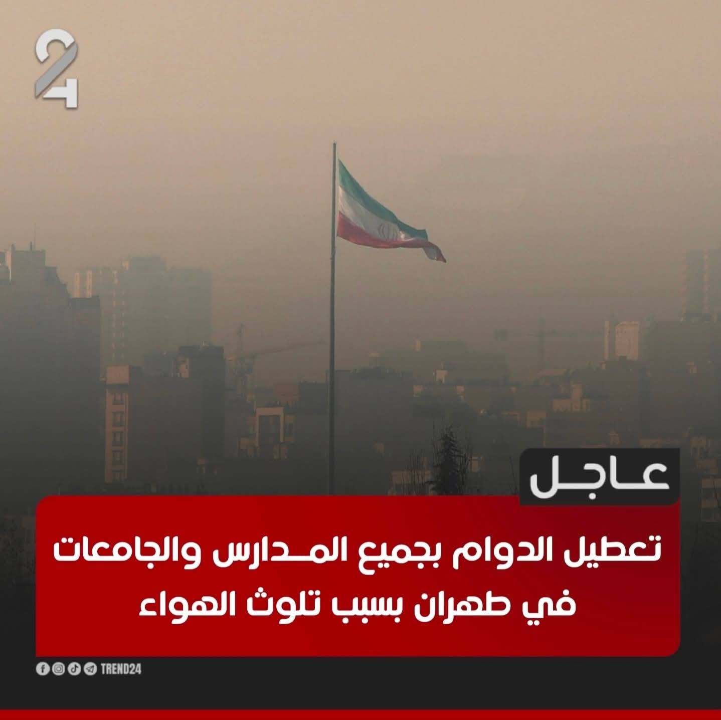 أصدرت السلطات الإيرانية إنذارًا برتقاليًا بسبب موجة تلوث دخاني خطـ.ـير يشمل طهران وعددًا من المحافظات الأخرى. وبناءً على ذلك، ستُتخذ الإجراءات التالية:
