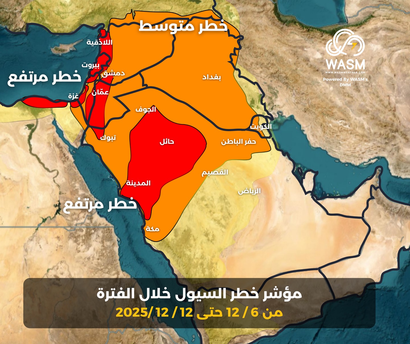 البلقاء اليوم - مؤشر خطر #السيول خلال الفترة 6-12 #ديسبمر #كانون_الاول في المنطقة ونتيجة نشاط منخفضات جوية محملة بكميات كبيرة من الهطولات.