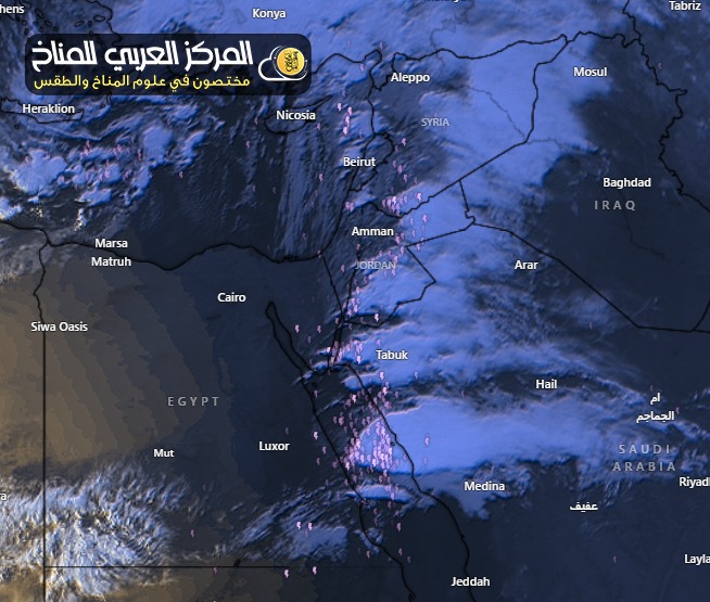 البلقاء اليوم - اكثر من 300 ومضة برق سجلتها الاقمار الصناعية فوق الاردن وفلسطين وسوريا ولبنان خلال ساعتين فقط قبل قليل , فيما سجلت حوالي 500 ومضة برق شمال البحر الاحمر وغرب السعودية.