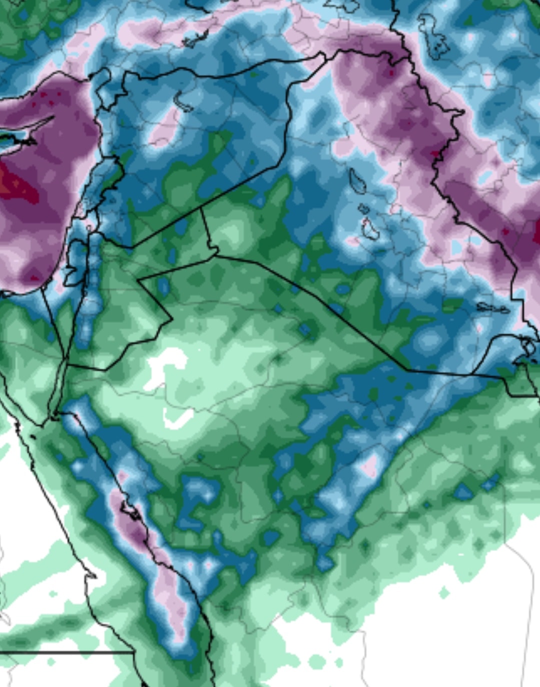 البلقاء اليوم - كميات ضخمة من #الأمطار يرصدها النموذج #الأوروبي لصالح #العراق