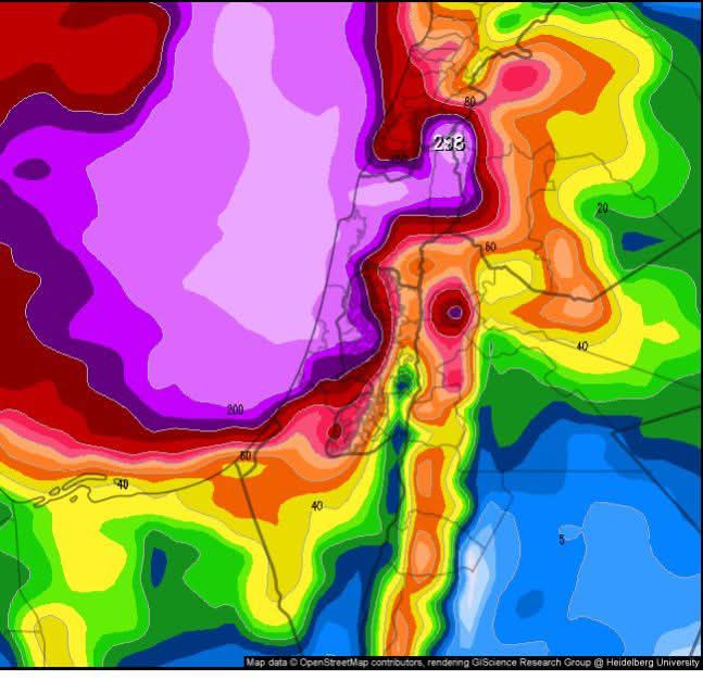 البلقاء اليوم - راح نسبح بالماء ..ز على ذمه الأقمار الصناعية حركه المنخفض الجوي تحديث يشير الى 250 ملم من الأمطار على سواحل البلاد. 180مل لمدينه القدس أرض الإسراء والمعراج تحذير للجميع فيضانات عارمه طوفان على السواحل لبنان وفلسطين وسوريا والمناطق الداخلية في سوريا ولبنان والاردن وفلسطين يخشى من حدوث الفيضانات كميات كبيره وهائله قادمه بإذن الله نحن بالانتظار الله كريم