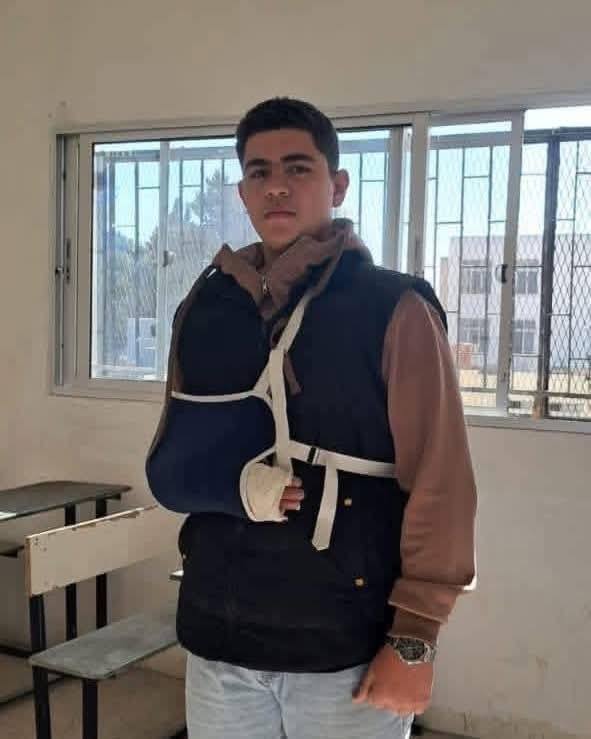 أصيب #الطالب ( #أنس #نادر #الحرباوي ) بكسر في يده بعد إنقاذه طفلًا قفز من شرفة منزله هربًا من حريق اندلع في شقته في الطابق الرابع بأحد المباني ب #منطقة #النزهة